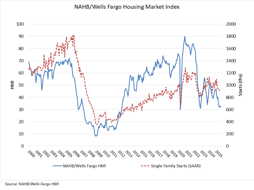 The National Association of Home Builders (NAHB)/Wells Fargo Housing Market Index (HMI), issued today, showed that builder confidence in the market for newly built single-family homes was 32 in September, unchanged from the previous month.