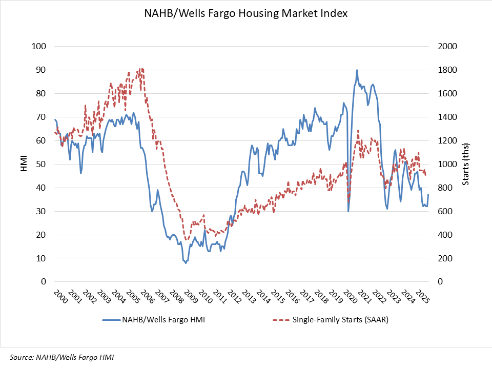 The NAHB/Wells Fargo HMI is based on a monthly poll that NAHB has been conducting for over 40 years. It assesses builder perceptions of current single-family home sales and sales projections for the next six months as “good,” “fair,” or “bad.”
