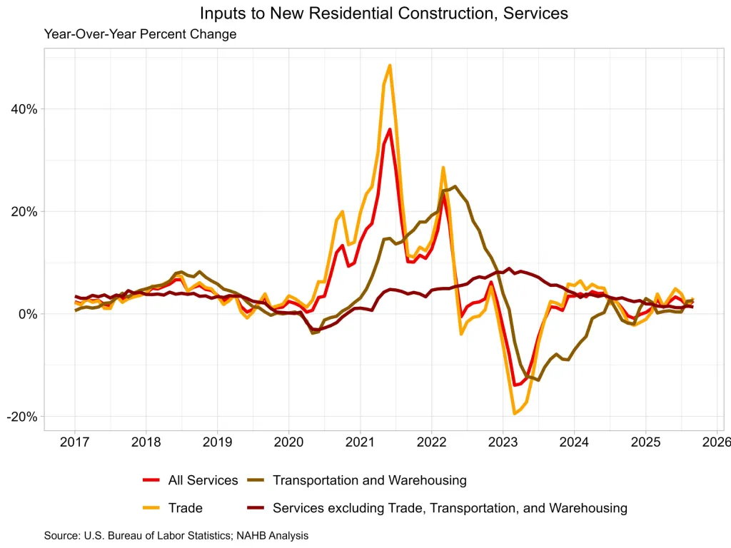 In September, prices for service inputs to residential building rose by 0.3%. Year over year, service input prices increased by 2.5%.