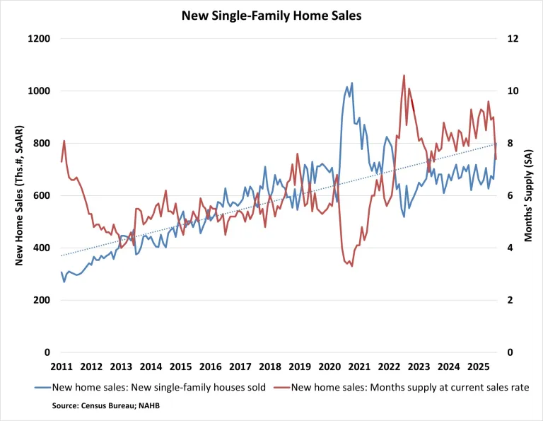 Sales of newly built single-family houses increased 20.5% in August to a seasonally adjusted annual rate of 800,000, up from an upwardly revised estimate in July, according to newly released statistics from the United States Department of Housing and Urban Development and the United States Census Bureau. New house sales are 15.4% higher than a year ago.
