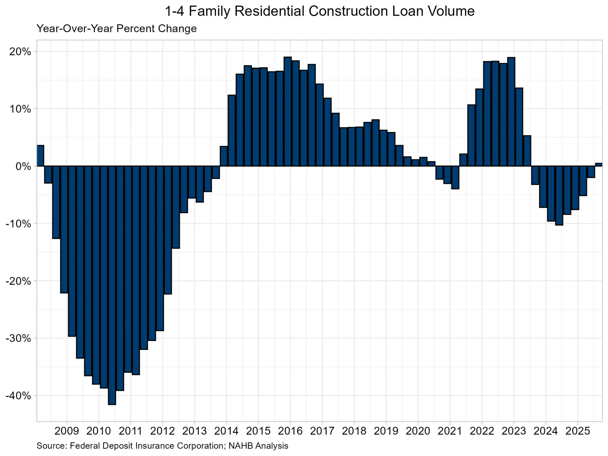 Loan balances for 1-4 family construction increased to $91.2 billion in the third quarter, the first annual increase in more than two years.